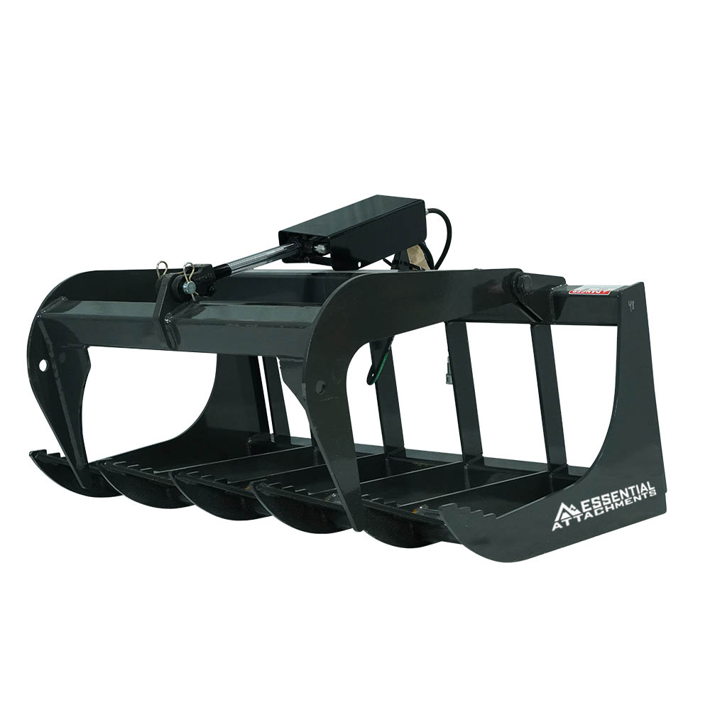 The Single Cylinder Tractor Root Grapple is built for digging, raking, and handling light debris, small stumps, and brush, making it ideal for general cleanup. Available in 48” and 60” widths, it features 5/16” thick tines spaced 9” apart, allowing dirt to pass through while gripping materials securely. The grapple opens up to 29” for handling various loads.